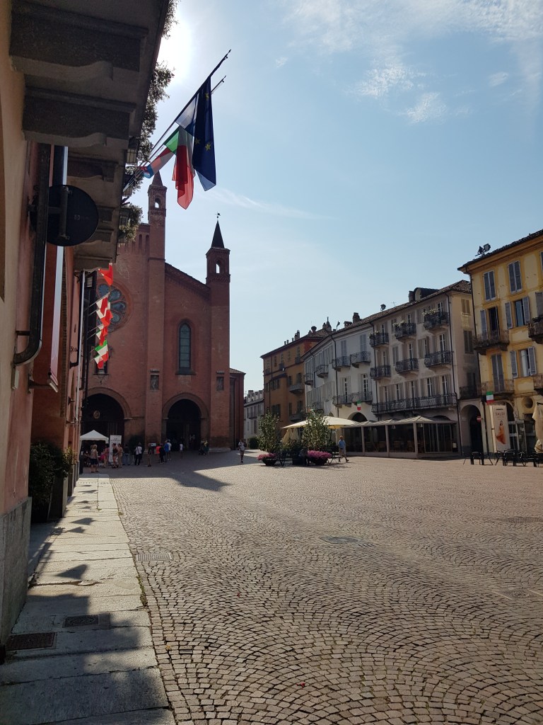Alba, capitale della Nutella. Appena scesi dall’auto vi darà il il benvenuto un profumo assurdo di cioccolato. Alba infatti é famosa per la fabbrica della Ferrero, davvero vicinissima e che quindi profuma la città. Dopo un giro per le viuzze del centro (non é una città molto grande) che sapranno impressionarvi con vetrine ricolme di tartufo e prodotti tipici, vi consiglio una visita alla Cattedrale di San Lorenzo, patrono della città. Arrivati in piazza Michele Ferrero, che ospita moltissimi bar, concedetevi una sosta per un aperitivo al punto vendita di Roberto Sarotto, in cui poi potrete anche acquistare!!. Il miglior posto per bere un calice di rosso ed immergersi definitivamente nel mood delle Langhe!!!