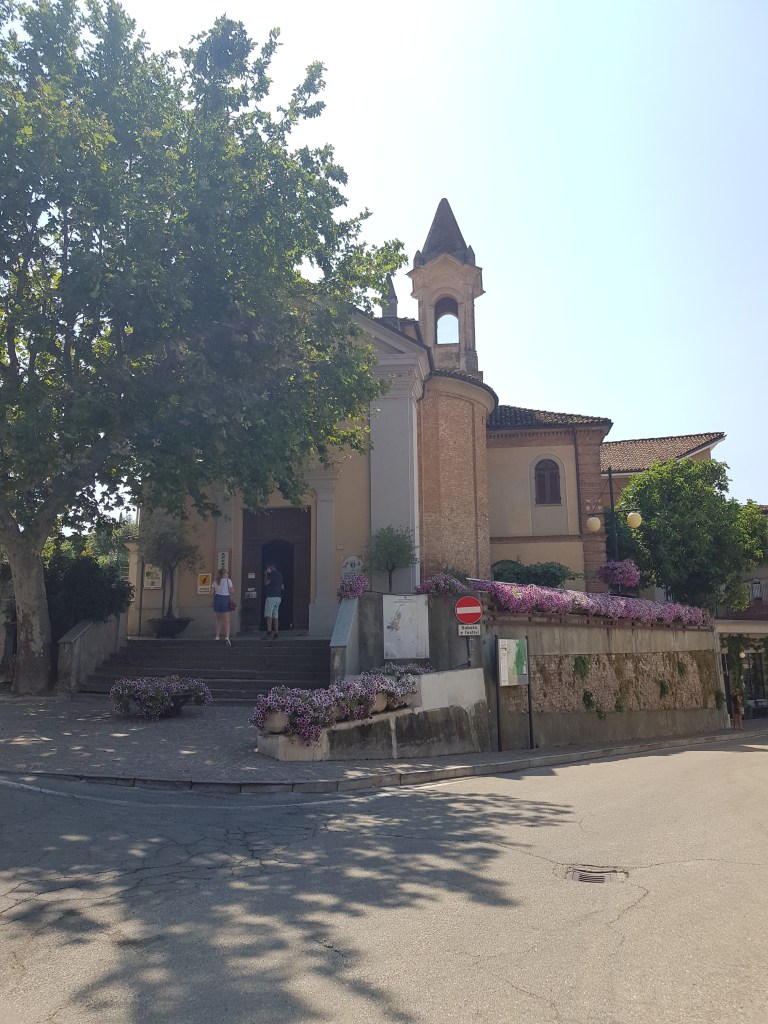 Barbaresco, minuscolo paese arroccato su una collina, ma famosissimo per il suo ottimo vino. Sono rimasta impressionata da questo borgo…. é davvero piccolo ma merita una visita, sia per il centro che per il bellissimo paesaggio che lo circonda!! E’ famoso soprattutto per la sede della rinomata cantina Gaja e per l’enoteca del barbaresco, quest’ultima, ospitata in una chiesa sconsacrata, offre una selezione infinita di vini del territorio e c’è, ovviamente, la possibilità di degustarli. Vi consiglio di salire sulla Torre di Barbaresco (cliccate sul link e controllate gli orari, noi, ahimè abbiamo trovato chiuso). Salirete su una brevissima ma ripida salita fino all’imbocco dell’ascensore in vetro, che vi porterà all’entrata e da cui potrete ammirare un bellissimo 360° sulle colline limitrofe. Al suo interno troverete la sala dei 5 sensi e potrete anche fare delle degustazioni. Finito il tour alla torre, fermatevi alla trattoria Antica Torre. Prodotti tipici, tanta gentilezza e cortesia e, soprattutto, prezzo nella norma.