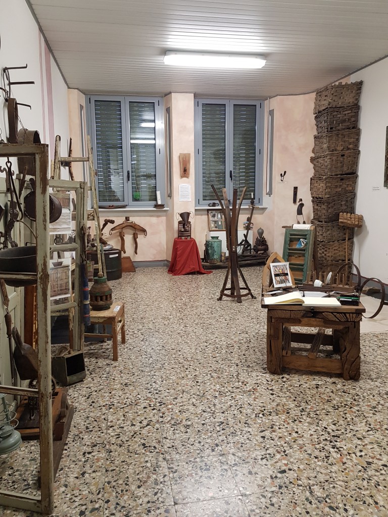 Camo é un paesino posizionato su una collinetta, dalla cui piazza si puó ammirare la Valle Belbo. La nostra fortuna è aver avuto Piero, uno degli amici di mio papà, che per l’occasione ci ha fatto da cicerone per le vie di Camo. E’ un paese davvero piccolo, non ha nemmeno un panificio, per rendervi conto della dimensione. Eppure, se seguirete le indicazioni per arrivarci troverete scritto “museo a cielo aperto”. Inizialmente pensavo che si intendesse per il paesaggio che lo circonda, che é davvero meraviglioso, ma in realtà, se salirete la scalinata che vi porterà sulla sommità del colle, oltre ad ammirare la chiesa di San Pietro in Vincoli e il Palazzo Comunale, vi troverete al cospetto di numerosissime installazioni di opere di vari artisti. Ecco il perché del “museo a cielo aperto” . Quasi ogni opera è accompagnata da una targhetta con un QRcode da scansionare, in cui troverete informazioni sull’autore dell’opera e sull’opera stessa. E già che sarete saliti al palazzo comunale, potrete ammirare il museo del riciclo. L’idea è di una signora inglese, che innamorata dei bellissimi paesaggi si è trasferita a Camo con il marito. Il suo è uno spazio curato che raccoglie molti oggetti tipici del lavoro dei campi e della vita di campagna trasformati in complementi d’arredo molto originali, come per esempio un restrello trasformato in un porta tazzine o una vecchia tegola trasformata in lampada. Sul sito di Camo troverete tutte le info per una visita.