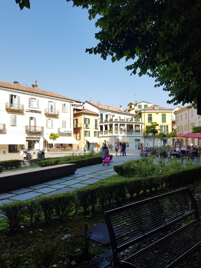 La Morra, il paesino che piú mi ha colpito. Noterete che la strada che conduce alla sommità del colle su cui si erge La Morra, è meravigliosa. Bellissime sono le colline coltivate a vigna, di un ordine, di una pulizia e una precisione assurdi. Sulla curve che salgono dalla superstrada, troverete anche una delle Panchine Giganti del Big Bench Project. Il paese é di origine medioevale e questo si ritrova nelle strade acciottolate in salita. Arrivati, vi meriterete una visita alla enoteca comunale di La Morra, ubicata in un contesto meraviglioso e gestita da personale davvero preparato. Immancabile una seduta di eno-shopping!!! Ma spettacolare e che vi lascerà a bocca aperta è la piazza/belvedere. Si apre sulle colline circostanti e a perdita d’occhio avrete un mare di colline verdi. Occhio a dove metterete i piedi sul belvedere!! Sono infatti indicati, con delle incisioni sul lastricato, i nomi dei paesi che vedrete all’orizzonte (ognuno in corrispondenza del paese stesso). Le stradine del paese sono davvero bellissime e noterete che ci sono moltissime chiese e cappelle da visitare. Per gli appassionati, moltissimi sono i sentieri e i percorsi MTB da fare tra le vigne e le colline circostanti. Se invece siete appassionati di vino, dovrete assolutamente passare al negozio “Vicino di Vino“; troverete una quantità assurda di etichette provenienti da ogni dove (non solo piemontesi). Una vera chicca per gli appassionati.
