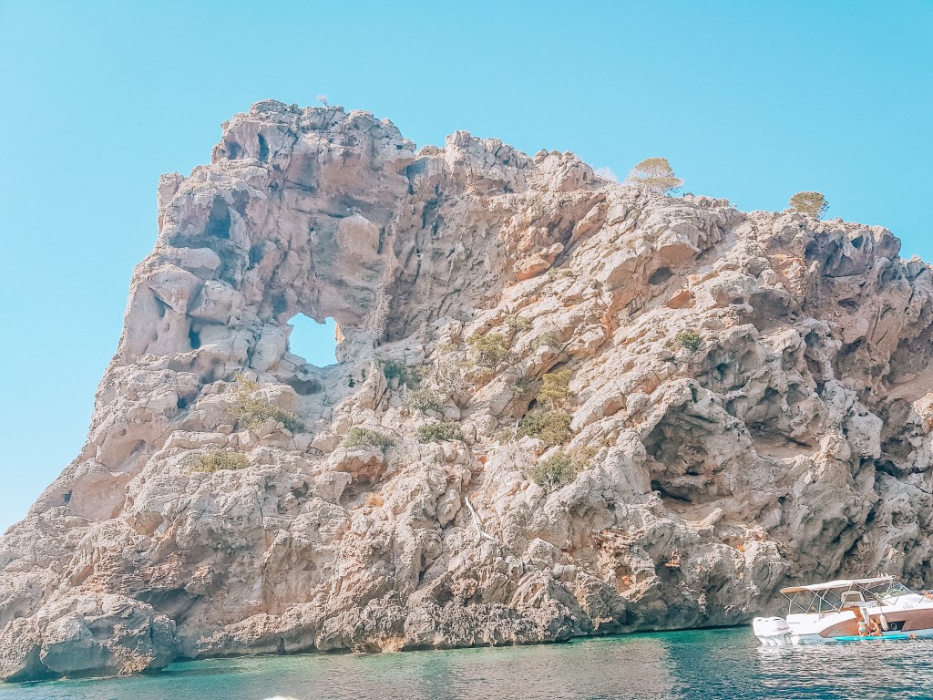 Il giro è veramente splendido e la guida molto competente e disponibile (NB: spiegazioni in inglese e spagnolo). Visitiamo qualche grotta dove i contrabbandieri e i pirati nascondevano le loro merci, facciamo snorkeling in acque cristalline e ci godiamo la costa fino a Cala de Deìa. Piccola pausa per ammirare questa cala bellissima (e il bellissimo ristorante in cui torneremo la prossima volta) e poi diretti a Sa Foardada. Arrivare qui via mare è qualcosa di magico. Lo scoglio, che sembra uno scoglio qualsiasi, aggirandolo si rivela magnifico con il suo foro!!