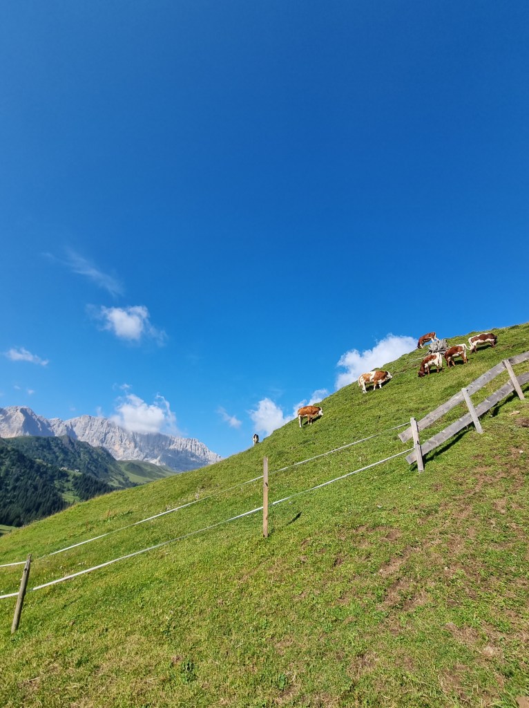 Una volta sceso il sentiero sarete praticamente in un piccolo tratto pianeggiante, curato come un giardino inglese. Il prato ben tagliato, gli animali nei loro pascoli e la bellissima e piccolissima baita con la sua cucina speciale!