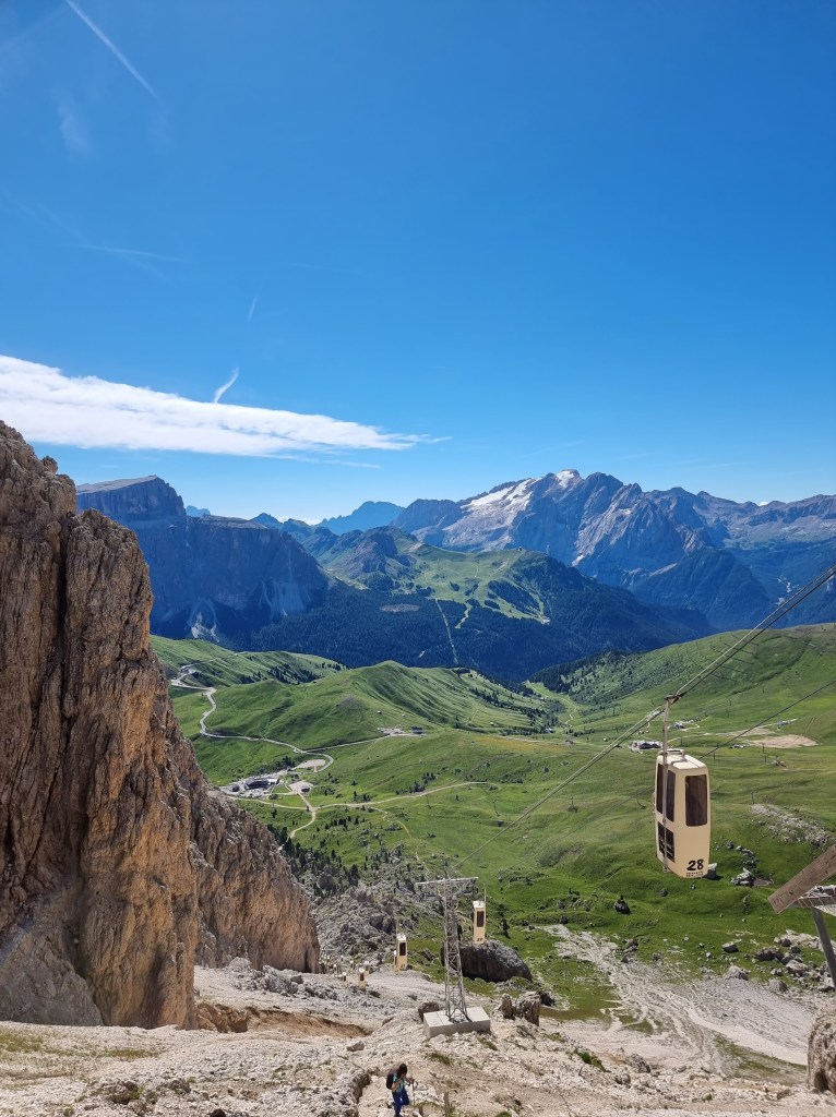 Arrivati al Passo Sella, in base alle vostre capacità, dovrete valutare se proseguire a piedi o prendere la bidonvia che vi porterà a Forcella Sassolungo.