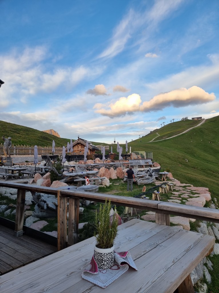 Proseguendo con la discesa tra massi e ghiaino arriverete in 1 ora abbondante circa al rifugio Vicenza. Incastonato tra le rocce dolomitiche e con un bellissimo panorama sull’Alpe di Siusi.