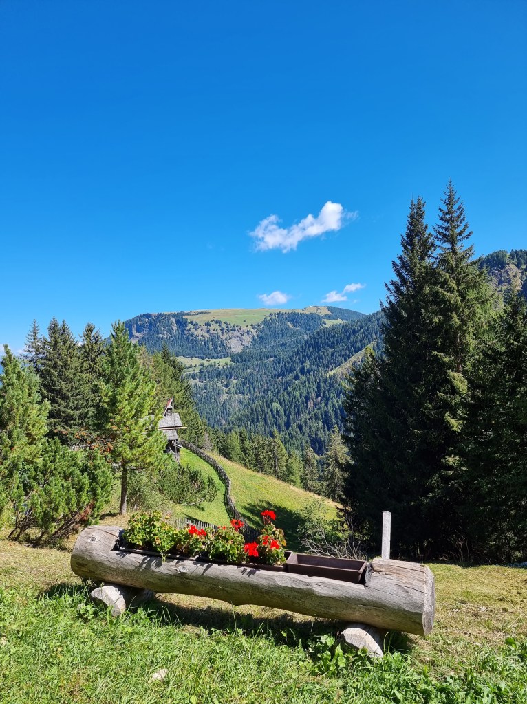 Un bosco incantato. Ruscelli da guadare. Ponti in legno. Uno sguardo verso infiniti prati verdi. Profumo di cirmolo. Poca gente. Lo scrosciare dell’acqua. Silenzio. Una malghetta da vedere.