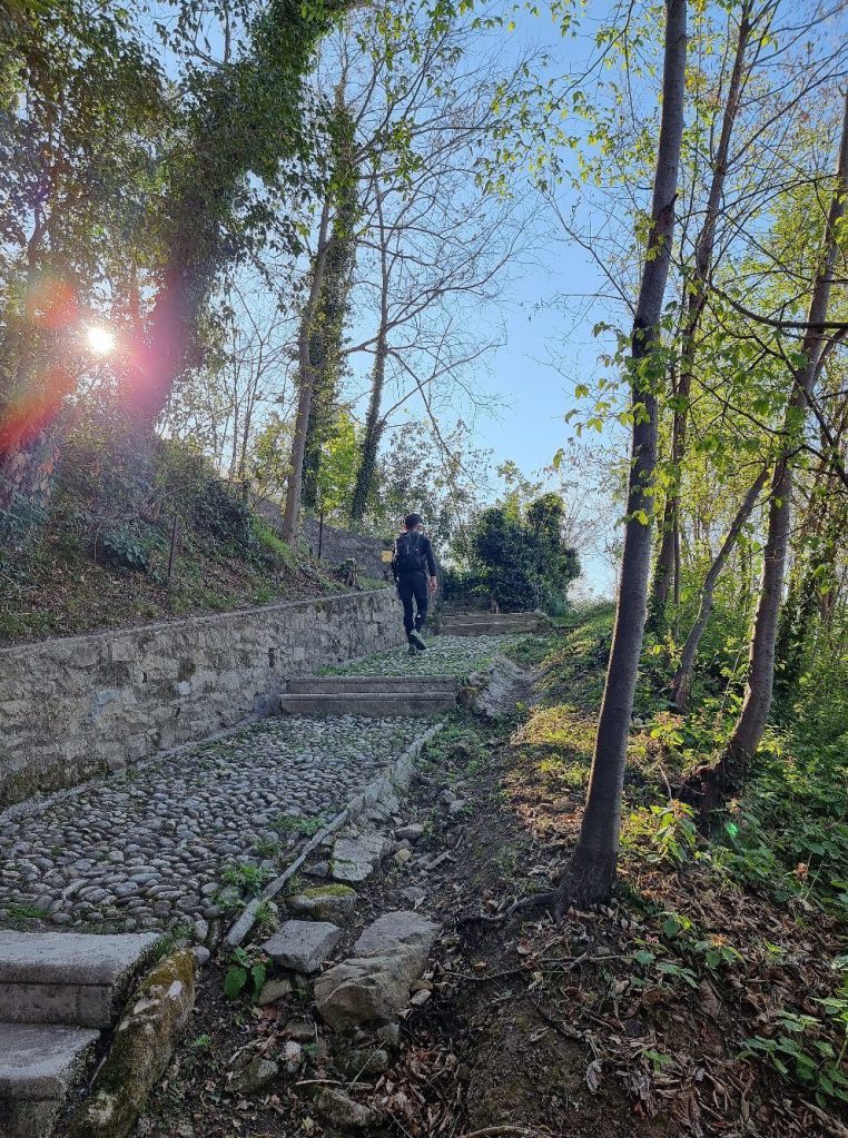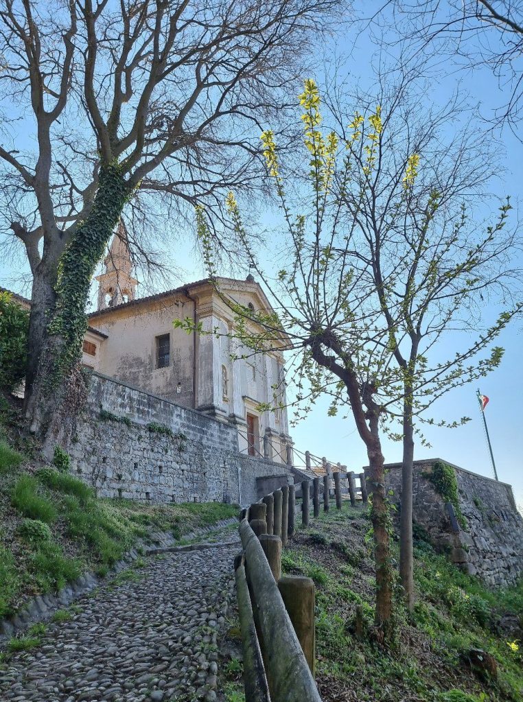 Il percorso comincia nell’abitato di Costa. Precisamente da Via Dalmazia, dovrete imboccare Via Madonna della Salute, dove potete trovare l’indicazione per il santuario e un piccolo capitello votivo. Dopo pochi metri, sulla destra, avrete l’inizio della scalinata, praticamente in uno dei cortili del borgo.