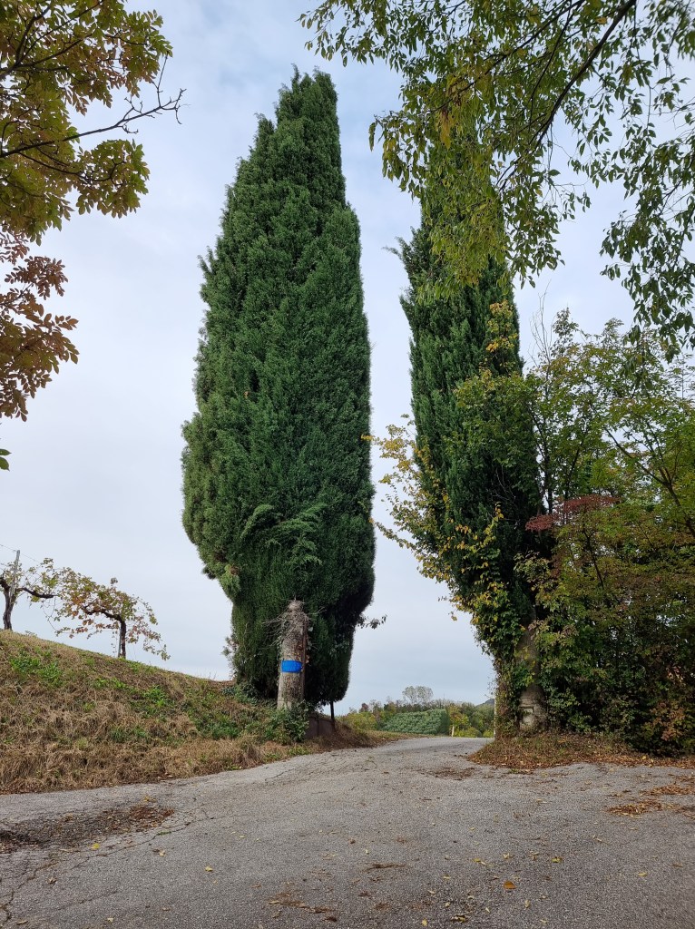 In questa fase, le indicazioni sono davvero carenti, per darvi un aiuto, tenete presente che ad un certo punto troverete due bellissimi cipressi che fungono da “cancello” per una proprietà privata e quindi dovrete continuare per la vostra strada.