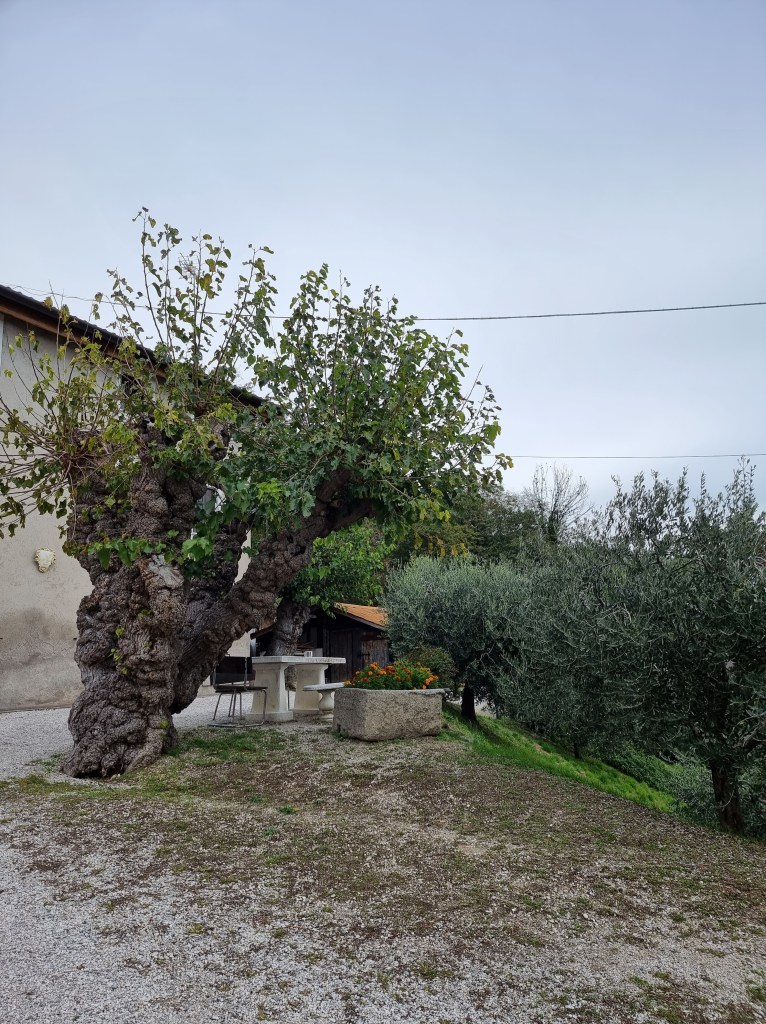 Più avanti ignorate il bivio per le “Case Rosse” che è una strada senza uscita e proseguite sulla strada asfaltata, fino ad un piccolo borghetto di case, dove la strada ha una pendenza abbastanza impegnativa e dove potrete ammirare un gelso secolare davvero incantevole.