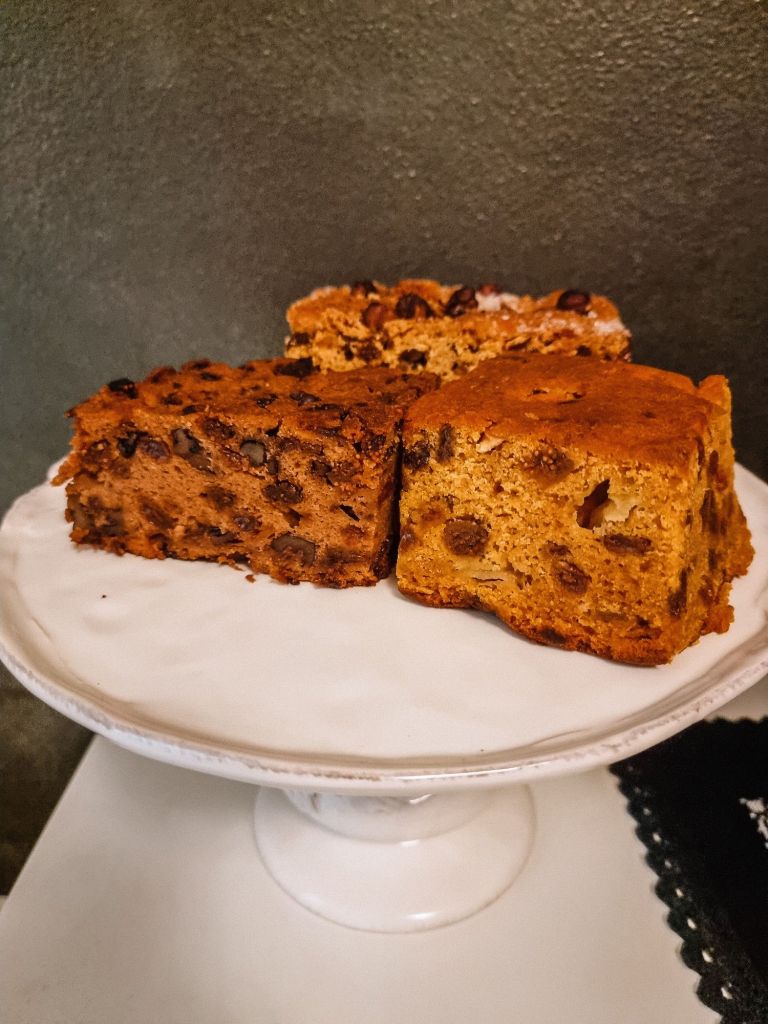 Gli ingredienti base sono farina, zucchero, uova, latte, burro (o ancora meglio strutto), sale, uva passa e farina da polenta. A cui si aggiungono a seconda della ricetta: mele, scorza d’arancia, fichi secchi, pinoli, canditi, noci, grappa, nocciole, zucca, ecc…insomma, tutto quello che si trovava in dispensa perchè “l’abbondanza fa abbondanza” ed essendo un rito propiziatorio questa cosa veniva presa in considerazione molto seriamente.