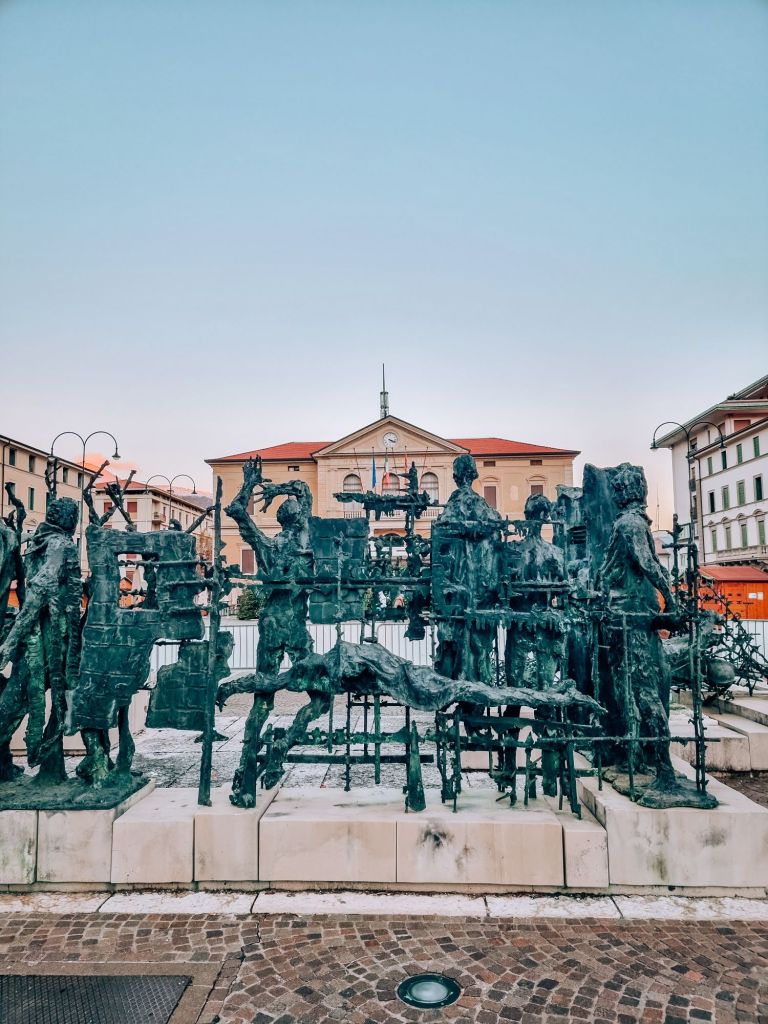 Siamo a Vittorio Veneto, nel quartiere denominato “Centro” e nato nel periodo Ottocentesco dopo l’unificazione dei due precedenti comuni Ceneda e Serravalle. Il monumento si trova in Piazza del Popolo, piazza che oltre ad ospitare la scultura vede anche il municipio e di fronte i bellissimi giardini, vanto della nostra città.