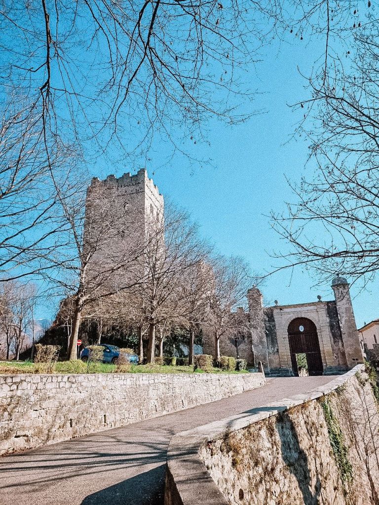 Alla fine del sentiero della Via Crucis, vi basterà girare a sinistra, passare sotto l’arco e proseguire verso il Castello di San Martino, detto anche il Castello del Vescovo, dove vi consiglio una visita al bellissimo cortile che è sempre aperto.