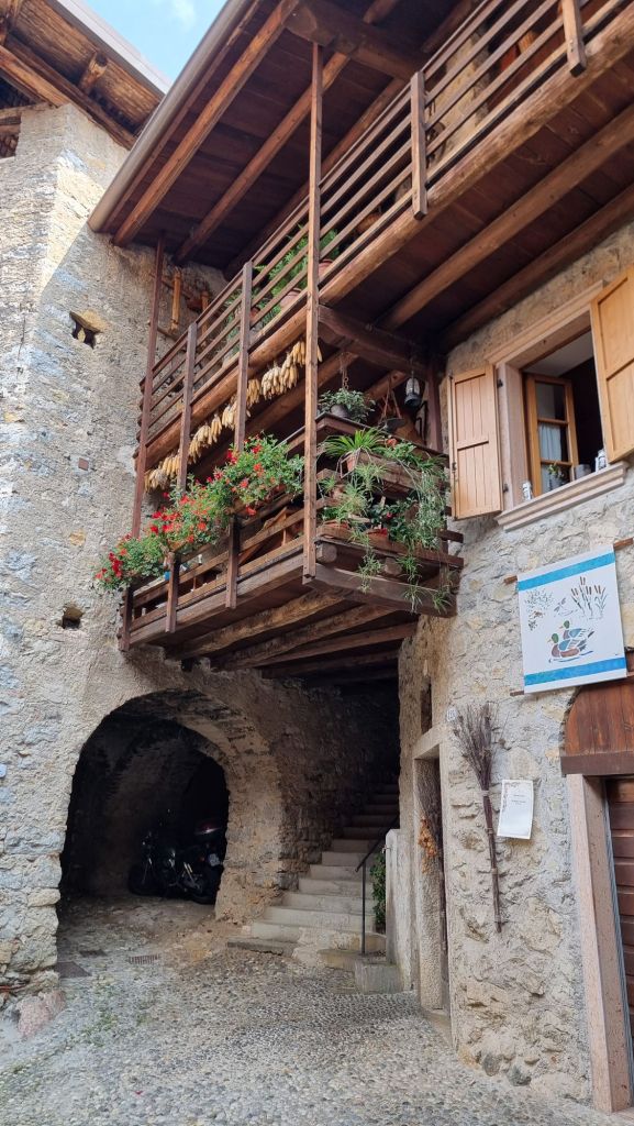 La visita del borgo si esaurisce in circa un’oretta e il mio consiglio è quello di perdersi tra il dedalo di viuzze che lo compongono. L’impianto urbanistico originario, è rimasto intatto con le quattro vie principali che convergono nella piazzetta centrale e un insieme vicoletti che si aprono su cortili e volte a botte che affacciano sul bellissimo panorama sul Lago di Garda.