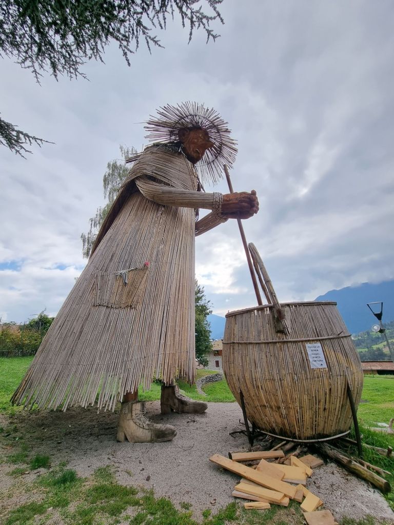 Come tributo alle leggende della tradizione popolare, raccontate in queste zone, è stata costruita una strega gigante in legno e canne di bambù, che è entrata nel Guinness dei primati come “Strega più grande del mondo”. Misura infatti 10,77 mt di altezza e 4,7 di larghezza.
