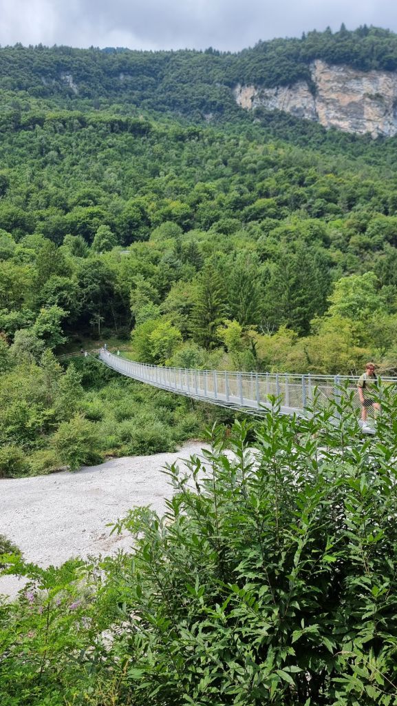 Vi spiego meglio. Per consentire il giro completo del lago, è stato realizzato questo ponte sospeso che collega le due sponde del Rio Sec. Ma è alto solo 10 mt, quindi è fattibile anche da chi soffre le altezze come me, ma vuole comunque provare l’adrenalina di passeggiare su un ponte sospeso come Indiana Jones.