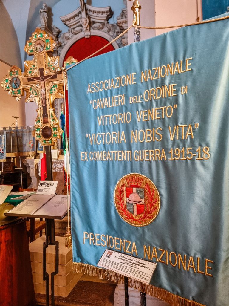 - la bandiera storica dell’Associazione Nazionale “Combattenti e reduci” della sezione di Vittorio Veneto che mi ha lasciato veramente il segno, perchè si vede che è vissuta.